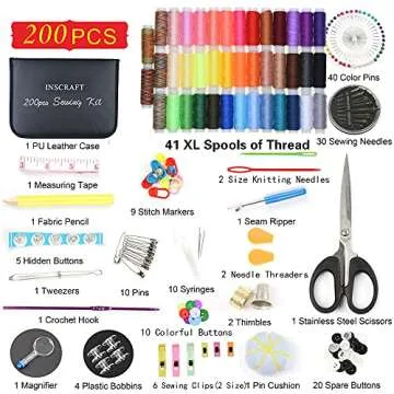 INSCRAFT Sewing Kit - 200 Premium Supplies, 41 XL Spools for Travelers and Crafters