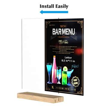 Insdawn 8.5*11 inch Acrylic Sign Holder Clear Sign Holder Plastic Paper Holder L or T Shape Sign Menu Holder Plastic Display Stand for Office Store Marketing 3 Pack Oak Base