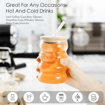 INSETLAN Creative Glass Cups With Lids And Straws-18oz Wave Shape Drinking Glasses of 4 Set, Beer Glasses, Can Shaped Glass Cups, Cute Tumbler Cup, for Cocktail, Juice, Iced Coffee (18 OZ)