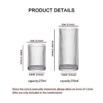 INSETLAN Glass Cups Vintage Glassware Set of 4 Small, Origami Style Transparent Cocktail Glasses Set, Bar Beverages Ice Coffee Cup Juice Ripple Drinkware, 270ml (S)