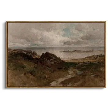 InSimSea Framed Canvas Wall Art Vintage Decor, Seaside Path Wilderness Landscape Paintings Artwork, Large Prints, Retro Wall Decorations for Living Room Bedroom Bathroom, 24"x36"