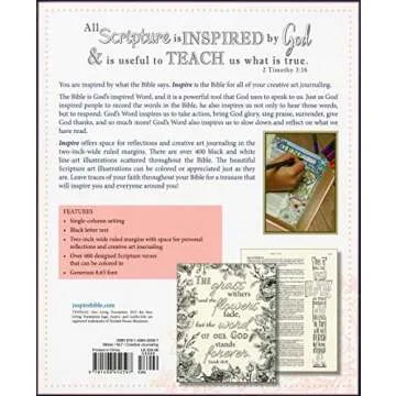 In a market saturated with standard Bibles, the Inspire Bible NLT stands out due to its unique integration of artistry and faith. Many competitors focus solely on the textual elements of scripture, often lacking the engaging features that invite exploration and personal expression. Unlike traditional Bibles, the Inspire allows its users to interact with the Word visually through its custom illustrations, making scripture study more immersive and engaging. Additionally, while other Bibles may offer limited space for personal notes, the Inspire ensures your thoughts and prayers are as cherished as the text itself, reinforcing the mission of connecting creativity with spirituality.