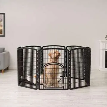 Show moreWelcome to the ultimate solution for your furry friends, the Inspired Essentials 34 Inch Pet Playpen with Door. Designed with your pet's safety and comfort in mind, this eight-panel playpen is perfect for creating a secure space for puppies and extra small to medium-sized dogs. Measuring 62.99 x 62.99 x 34.25 inches, it offers plenty of room for play and exploration while keeping your pets contained. The durable heavy-duty molded plastic panels are not only lightweight but also easily interlock to provide a sturdy barrier. With its intelligent design, it features a convenient latching door for hassle-free access, ensuring that both you and your pet can enjoy peace of mind while they play.