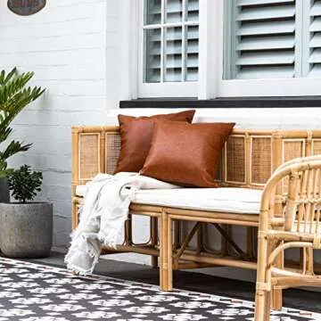 Show more Transform your living space with these stunning faux leather pillow covers that strike the perfect balance between style and comfort. Made from high-quality materials, these covers boast a rich mid-tone brown that complements any decor theme, especially for those embracing a boho vibe. Whether you're revamping your couch or seeking an elegant touch for your bedroom, these pillow covers are your go-to choice for an instant upgrade.