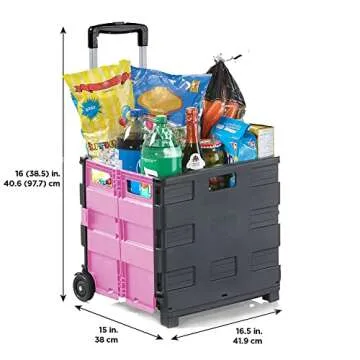 Show moreIntroducing the Inspired Living Ultra-Slim Rolling Collapsible Storage Pack-N-Roll Utility Cart, your ultimate companion for a seamless and organized lifestyle. This innovative utility cart boasts a heavy-duty construction that can effortlessly hold up to 80 lbs, making it perfect for a multitude of tasks—from grocery shopping to transporting classroom supplies. Its collapsible design allows it to fold down to a mere 3 inches when not in use, ensuring it fits snugly in any storage space. With a striking palette of pink and black, this cart not only serves a practical purpose but also adds a pop of color to your routine.
