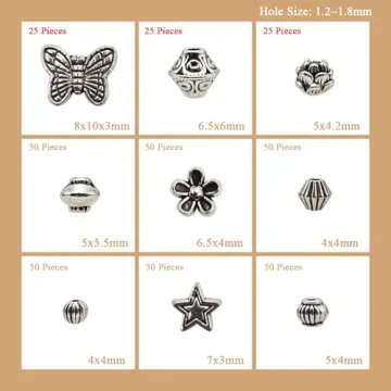 INSPIRELLE 375 Pieces Metal Alloy Spacer Beads Antique Silver Flower Butterfly Star Shaped Loose Beads for Jewelry Making and Crafting