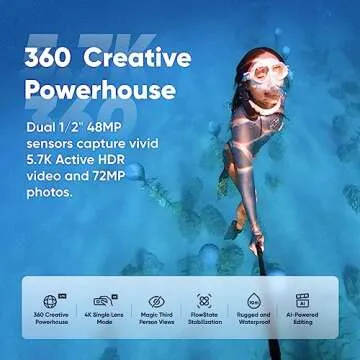 Insta360 X3 - Dive Kit (Original Version) - Waterproof 360 Action Camera with 1/2" 48MP Sensor, 5.7K 360 Video, 72MP 360 Photo, 4K Single-Lens Mode, X3 Dive Case, Floating Hand Grip and 128GB SD Card