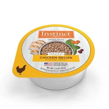 If you're searching for the ideal nourishment for your feline friend, look no further than our top-of-the-line Instinct Minced Cups wet cat food. Crafted with care, this exquisite meal features cage-free chicken along with a medley of wholesome ingredients like carrots, spinach, and cranberries, all simmered in a delicious broth. This delightful dish is not only a meal on its own but can also complement your cat's dry food regimen perfectly.