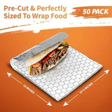 Insulated Sandwich Wrap Aluminum Foil Paper Sheets - 50 Pack for Hot Food