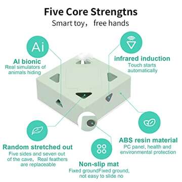 Interactive Cat Toy for Indoor,Simulated Hunting, Feather to Attract, Automatic Induction Start and Close, USB Port Charging, 4PCS to Replace The Feathers (Green)