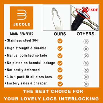 Show more Introducing the ultimate solution for maintaining your locs with ease and efficiency! The Interlocking Tool for Locs is a versatile 3-pack set designed specifically to cater to the diverse needs of dreadlocks, including micro, medium, and large sizes. Each tool is ingeniously crafted to simplify the process of retightening and maintaining your dreads, ensuring they remain perfect and well-defined.