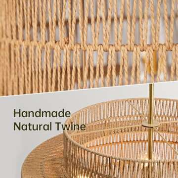 InterMaka 24” Boho Large Rattan Chandelier Light Fixture,6-Light Large Hand Woven Pendant Light Fixture Farmhouse Rustic Chandeliers for Kitchen Bedroom, Dining Room, Living Room, Hallway, Foyer