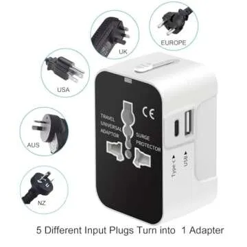 International Universal All in One Worldwide Travel Adapter Wall Charger AC Power Plug Adapter with USB C Charging Ports for USA EU UK AUS European Cell Phone Laptop