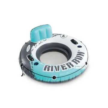 INTEX 56825EP River Run 1 Inflatable Floating Lounge: Comfortable Backrest – Built-in Cup Holders – Durable Grab Handles – All Around Grab Rope – 220lb Weight Capacity – Color May Vary