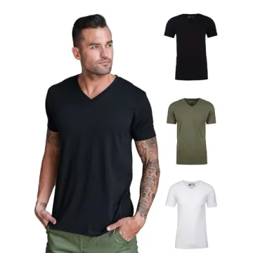 Show more If you're searching for the perfect v-neck t-shirt that blends comfort and style seamlessly, look no further than the INTO THE AM V Neck T-Shirts Men 3 Pack. Designed with the modern man in mind, these fitted casual shirts are made from a premium blend of high-quality cotton and polyester, ensuring a lightweight and breathable wear. Whether you're dressing up for a night out or lounging at home, these shirts offer a flattering fit that enhances your physique without sacrificing comfort.