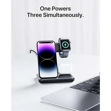 This charger offers universal compatibility across a wide range of Apple devices—from the iPhone 8 to the latest iPhone 14 series, as well as all variants of the Apple Watch and AirPods. Its user-centric design features designated spots for each device, providing secure and reliable charging without the risk of accidental slips. Enjoy the benefits of a clutter-free environment with a power solution that adapts to your lifestyle.