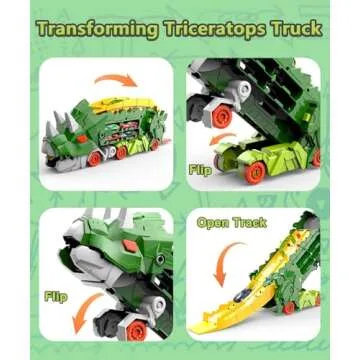 With its realistic design, the dinosaur truck features the lifelike action of its mouth opening and closing, effectively capturing cars as it travels. Kids will be thrilled as they pull out the cars from the open tailgate, providing a whimsical experience during play. The transformation to a majestic triceratops is seamless, complete with three iconic horns and an awe-inspiring head shield, making each play session a grand adventure.