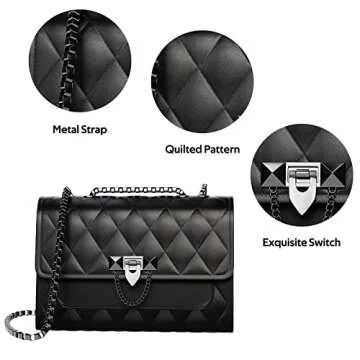 Show more Introducing the **Intrbleu Black Crossbody Purse**, the perfect accessory for the modern woman who values both style and function. This beautiful handbag, made from high-quality faux leather, features a stunning quilted design that adds a touch of elegance to any outfit. Its **adjustable shoulder strap** allows you to wear it in multiple styles: as a shoulder bag, a crossbody, or even as a chic handbag. Measuring **7.8" x 3.1" x 5.5"**, it holds just the right amount of essentials, making it an ideal companion for casual outings or special events.
