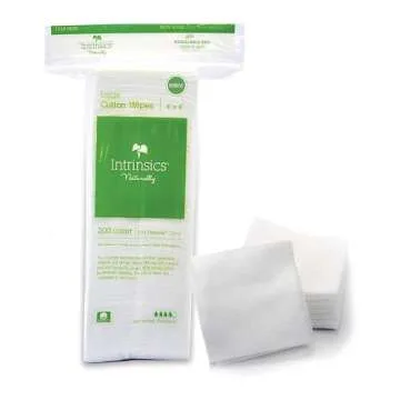 Intrinsics Large Cotton Face Pads – 4" x 4", 8-Ply 100% Cotton Makeup Remover Pads (200 Count)
