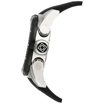 The black polyurethane band (215mm L x 26mm W) is designed for a secure fit, featuring a sturdy buckle clasp that ensures it stays in place no matter the activity. The watch is protected by a flame fusion crystal that provides scratch resistance without sacrificing clarity, while the push/pull crown adds to its easy-to-navigate features. The stationary black stainless steel bezel enhances its rugged look, complemented by functional subdials that track 60 minutes, 60 seconds, and 24 hours effectively.