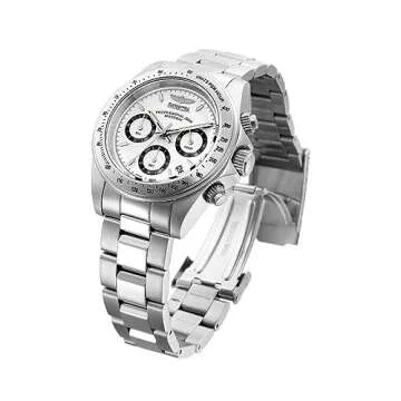Discover the stunning Invicta Men's 39.5mm Stainless Steel Watch, a perfect blend of style and functionality that's designed for the modern man. Crafted with a robust stainless steel case and measuring 39.5mm in diameter, this watch is a statement piece that is not just about looks but also performance. Featuring a sleek white dial adorned with luminous hands and hour markers, it ensures readability in all conditions. Powered by a reliable Japanese...