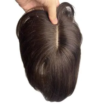 Invisible Human Hair Toppers For Women Clip In Toppers With 3D Air Bangs Fringe Straight 10x11cm Middle Part PU Scalp Wiglets Hairpieces Increase Hair Volume (30cm, Dark Brown)