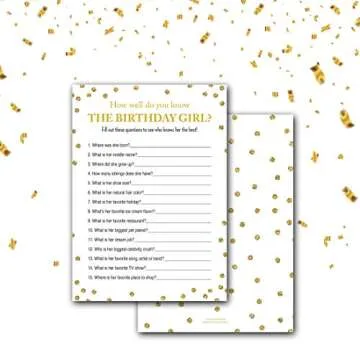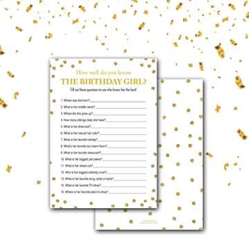 Show moreCelebrate birthday parties like never before with the **InvitationHouse How Well Do You Know the Birthday Girl** trivia games! Designed to spark laughter and memories, these trivia cards offer a fun way for guests to engage, compete, and share personal stories about the birthday girl. Each card measures a convenient **5" x 7"**, perfect for easy handling and reading amidst the festivities.