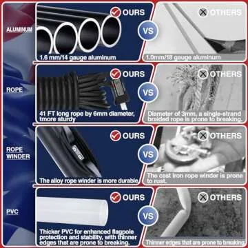 IOEN Flag Poles for Outside House in Ground - 25FT Sectional Aluminum Extra Thick Flagpole with Reinforcing Ring, 5x3 US Flag and White Gloves, Heavy Duty Black Flag Poles Kit for Yard or Residential