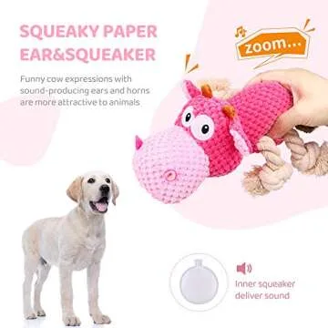 Show more This enchanting squeaky dog stuffed toy from IOKHEIRA is a delightful addition to any furry friend's collection. Crafted with an ultra-soft plush exterior and a cuddly natural cotton texture, it promises to be the perfect cuddle buddy for small to medium breed dogs. The durable design features natural cotton rope legs, ensuring it withstands playful bites and provides countless hours of entertainment. Additionally, the waterproof inner layer protects the stuffed cotton from dog saliva, keeping playtime hygienic and safe.