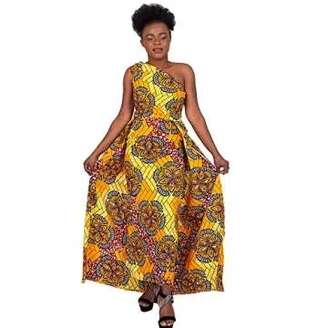 iooiooi Fashion Dresses with Swallow Tail African Women Print Dashiki Dress One Shoulder Long Maxi Dress