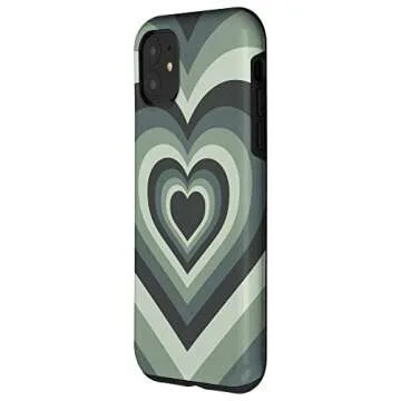 iPhone 11 Love Heart Sage Green Coffee Latte Pattern Valentines Phone Case