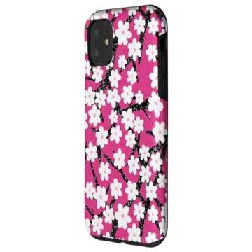 iPhone 11 White Cherry Blossoms Spring Magenta Sakura Floral Pattern Case
