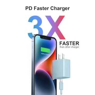 iPhone 14 13 12 Fast Charger 20W PD USB C Wall Charger with 6FT Fast Charging Cable for iPhone 14/14 Pro/14 Pro Max/14 Plus/13/12/11/Pro/Pro Max/Mini/Xs Max/X, iPad - Blue