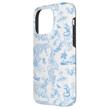 iPhone 14 Pro Max French Light Blue Toile Chinoiserie with Flowers, Leopards Case