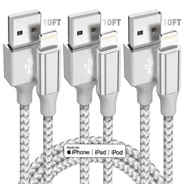 Show more Discover the ultimate charging solution with the iPhone Charger [Apple MFi Certified] 3pack 10FT Long Lightning Cable. This meticulously engineered charging cable is designed to enhance your daily connectivity needs, offering fast charging and high-speed data sync for your Apple devices. The Apple MFi certification guarantees complete compatibility with a wide array of iPhones including the latest models like iPhone 13, 12, and 11 Pro Max, as well as earlier versions such as the XR, XS, and 8. Built with robust materials and innovative technology, it promises a secure and efficient charging experience without the frustrating warning messages.