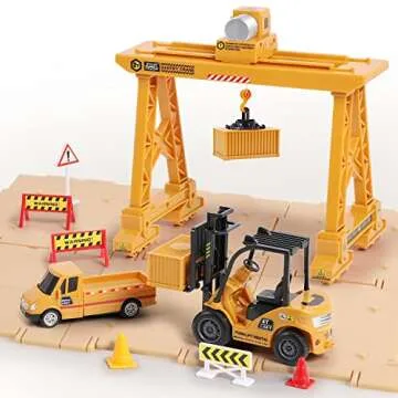 Show moreIntroducing the ultimate playtime adventure with the iPlay, iLearn 54 Piece Cargo Transport Vehicle Set, crafted for the imaginative minds of little truck enthusiasts! This splendid collection brings together a myriad of vehicles including a Gantry Crane, Pickup Truck, Tow Truck, Logging Truck, Magnetic Crane Vehicle, and Forklift, each designed with meticulous attention to detail. Your child will not only enjoy assembling these vehicles but also creating engaging stories involving transport and construction themes. With additional accessories like road signs, barricades, barriers, and safety cones, the possibilities for play are endless, making it perfect for both solo play and group interactions!