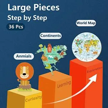 iPlay, iLearn Floor Puzzles for Kids Ages 3-5 4-8, Toddlers Wooden Jigsaw Puzzles, Round World Map Puzzle Toy W/Large Pieces, Geography Educational Birthday Gifts for 6-7 Year Old Boys Girls Children