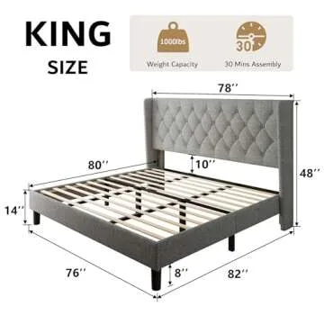 Transform your bedroom into a sanctuary of style and comfort with the iPormis King Size Platform Bed Frame. Featuring a stunning button-tufted headboard in a chic light gray upholstery, this bed frame combines modern elegance with functional design. The wingback structure not only elevates your room’s aesthetic but also enhances your lounging experience, allowing you to comfortably sit back while you unwind with a good book or your favorite show. With its plush finish, this bed frame invites...