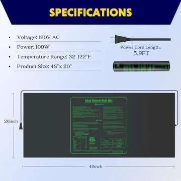 Show more Introducing the ultimate solution for green thumbs and plant lovers alike, the iPower Seedling Heat Mat brings upgraded technology straight to your indoor gardening efforts. Measuring a spacious 48" x 20" and featuring a robust 100W power output, this waterproof and durable heating mat is specifically designed to create the ideal environment for your plants to flourish. Its remarkable multi-point reinforcement makes it not only lighter and thinner but also smoother, ensuring uniform temperature distribution that promotes optimal growth. This means that whether you're sprouting delicate herbs, starting your favorite vegetable seeds, or nurturing tropical plants, you'll significantly enhance germination rates and overall health with this innovative tool.