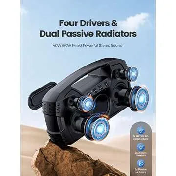 IPX7 Waterproof Bluetooth Speaker, 40W(60 Peak) Portable Wireless Speakers with Subwoofer, 32H Playtime, Stereo Loud Sound, Deep Bass, Bluetooth 5.0 with Handle for Pool, Beach, Outdoor, Gifts