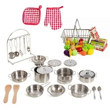 IQ Toys 50 Piece Complete Pretend Play Food and Kitchen Set, Complete with Supermarket Shopping Basket, Toy Cooking Pots, Pans, and Utensils, Kitchen Play Food and Accessories…