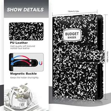 Iqihoo Budget Binder, Binder with Zipper Envelopes, Money Organizer for Cash, 27Pcs Cash Marble Saving Black