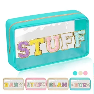 Introducing the Iqimott Preppy Patch Clear Makeup Stuff Bag—your go-to solution for stylish and functional organization! Crafted with care from high-quality nylon and PVC material, this chic makeup bag combines durability with lightweight convenience. With dimensions of 10.23 x 5.9 x 3.14 inches, it's designed to impress and meets the demands of fashion-savvy individuals and busy moms alike. The vibrant glitter letters like STUFF,...