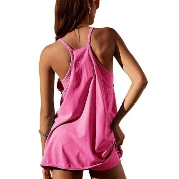 IQSQSQ Womens Sleeveless Athletic Hot Shot Mini Dress with Built-in Shorts Sundress(Rosered-M)