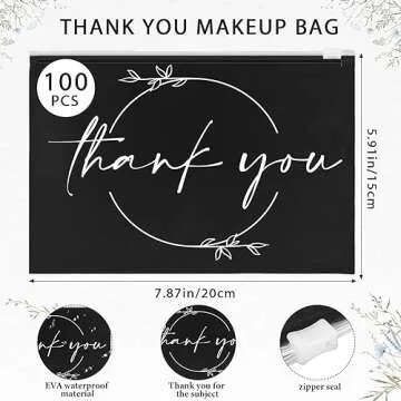 Ireer 100 Pcs Thank You Gift Makeup Bags - Cosmetic Bag with Zipper