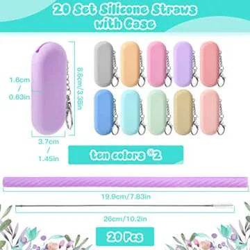 Each set includes 20 reusable straws, measuring 7.87 inches (20 cm) in length, accompanied by colorful cases in 10 vibrant hues that match the straws. These robust cases are not just eye-catching, but they also measure 3.4 inches (8.6 cm) long and 1.5 inches (3.7 cm) wide, making them incredibly portable and easy to carry wherever you go. Whether you're heading to a picnic, camping trip, or just out for a day, your straws will always be readily available!