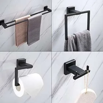 Iriber Bathroom Hardware Matte Black Double Bath Towel Bar Rack Shelf Caddy Accessory Set,Stainless Steel Towel Holder,Toilet Paper Holder,Robe Hook Wall Mounted,4-Piece