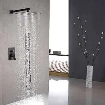 Iriber Oil Rubbed Bronze Shower System with 12 Inch Square Shower Head and Handheld Bathroom Rainfall Wall Mounted Shower Faucet Set Contain Shower Faucet Mixer Valve and Trim Kit (Valve Included)
