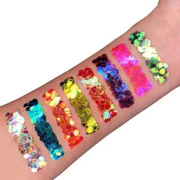 Show moreTransform Your Look with Moon Glitter's Iridescent Chunky Face & Body Glitter Gel! Perfect for adding that dazzling touch to your makeup routine, these vibrant glitter gels are specially designed to shine, shimmer, and create an unforgettable statement. Whether you're getting ready for a thrilling festival, a lively night out, or just adding a sprinkle of fun to your daily makeup, this collection of 8 stunning colors will leave you sparkling with joy. Made in the UK, our glitter gels are not only beautiful but also dermatologically tested and compliant with EU safety standards, ensuring peace of mind with every use.
