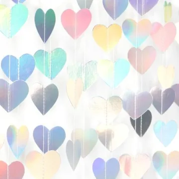 Iridescent Heart Garland - 52Ft Shimmering Party Decor for Every Celebration